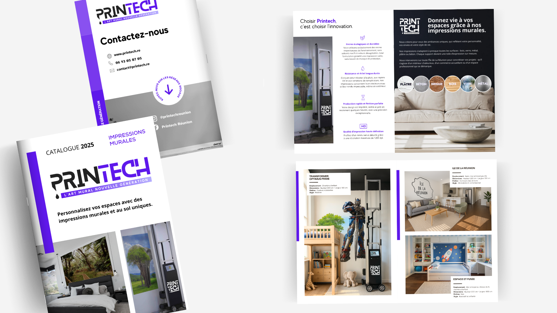 Printech est une nouvelle entreprise d’impression murale implantée dans le nord de l’île. Elle accompagne ses clients dans la création d’univers visuels uniques grâce à des impressions sur mesure, adaptées aux espaces professionnels comme particuliers.