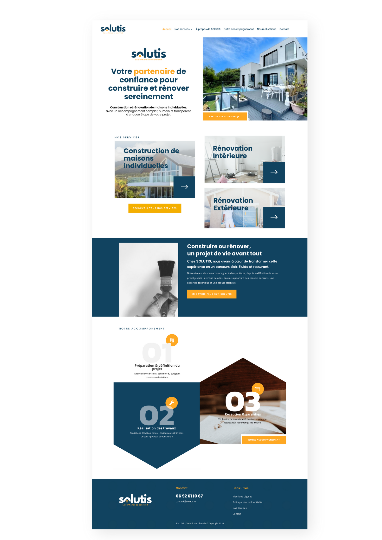 SOLUTIS est une entreprise de bâtiment spécialisée dans la rénovation et la construction de maisons à La Réunion. Le site internet vitrine a été conçu pour faire connaître son activité et valoriser son savoir-faire.